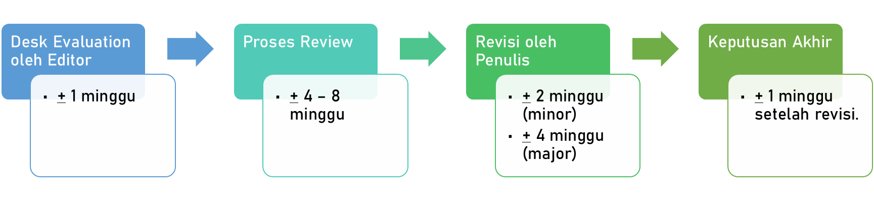 Revisi oleh penulis: ± 2 minggu (minor) atau ± 4 minggu (major).